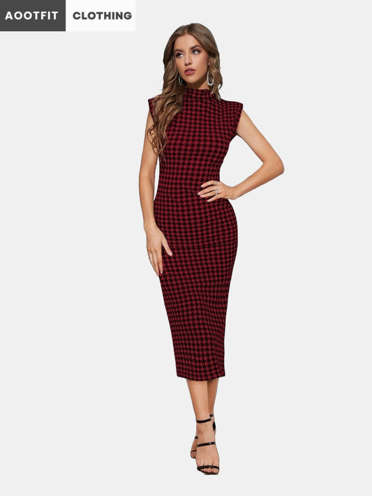 aootfit Women Bodycon Arrow print Dress and cap Sleeves