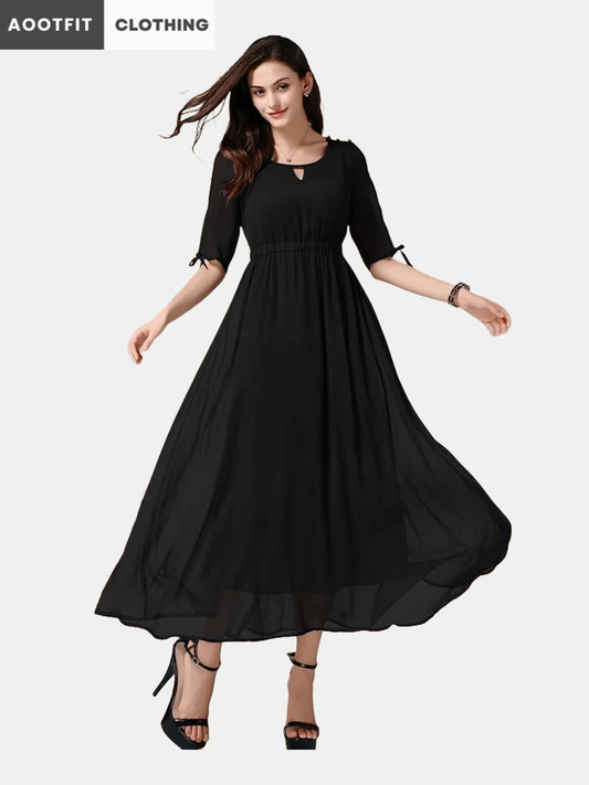 aootfit Women Designer Neck Long Dress