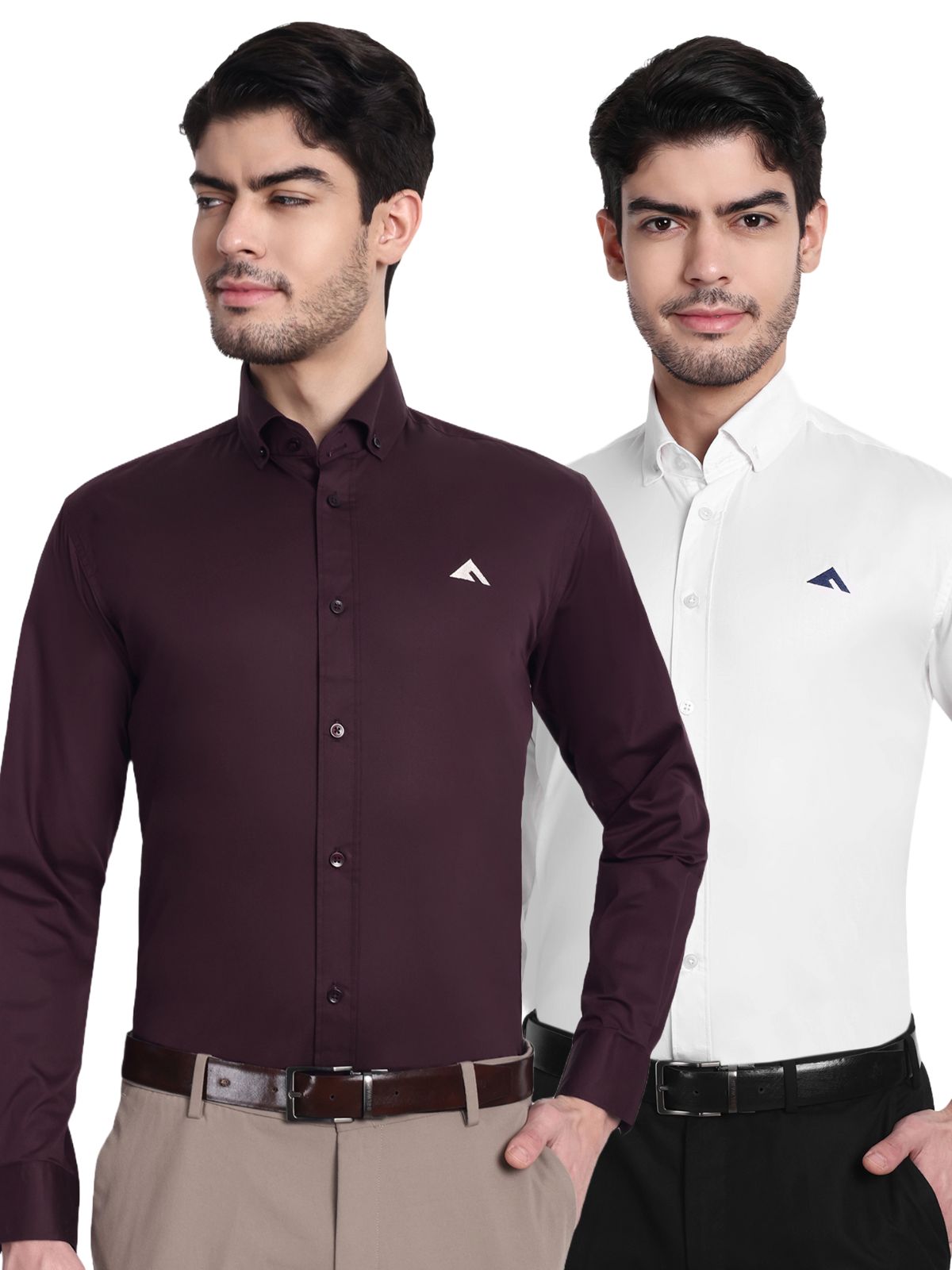 aootfit Combo of 2 Mens Shirt (Wine & White)